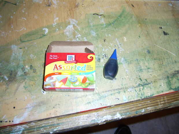 Cuidadosamente llene la botella con agua y agregar el colorante azul a la deseada sombra de azul. Seco toda el agua que tiene en el exterior de la botella.