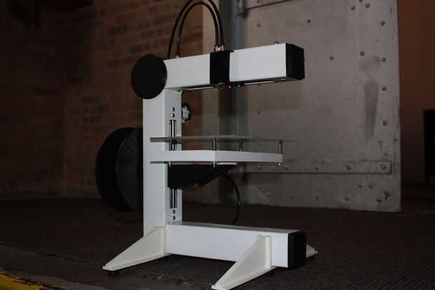La unidad se supone que se asemejan a un brazo robótico con tubos hidráulicos. Fue diseñado para que impresiones ser que menos afectadas por las vibraciones. Con el marco sólido 1, vibraciones de cualquier eje hará que el otro eje para moverse con él. Por ejemplo: Si el eje de X provoca un ligero