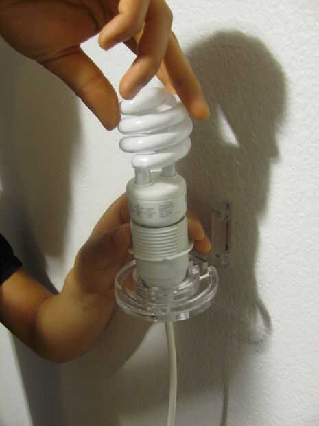 3. Enroscar una bombilla de luz - bombillas CFL o LED solamente por favor! Incandescentes son demasiado grandes para caber más tonos, energía ineficiente y un peligro de incendio.