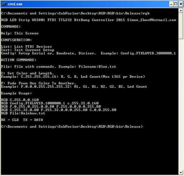 los comandos pueden escribirse en un archivo de texto, una línea de comando pr y ejecutan con RGB file:demo.txt