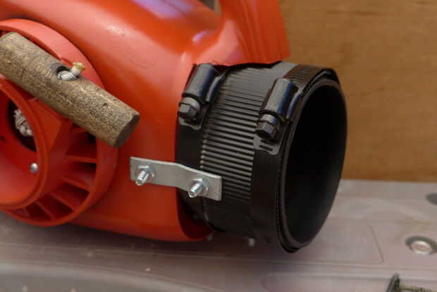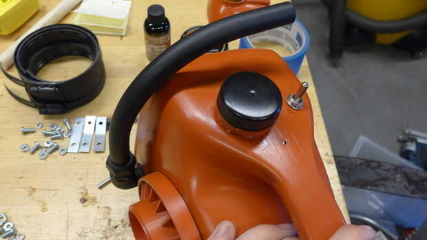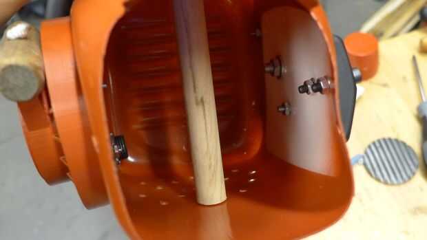 - Poner el manguito de goma en la abrazadera de la mano. Dejo adentro hacia fuera para que el lado liso enfrenta en.