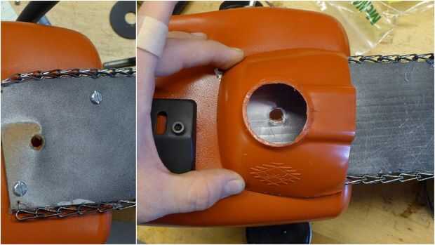 Mide 2.5" desde la parte superior del pico y marcar con rotulador (sobre donde pliegue del mango se encuentra con el cuerpo) y 3.5" al lado, que se convertirá en la parte inferior de la motosierra.