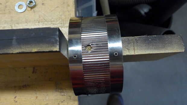 El ajuste de los tornillos en la abrazadera debe ir en sobre la posición de 10:00, con un soporte, hacer marcas en 3, 6 y 9:00. Desea las marcas justo más allá de la primera banda de sujeción por lo que hay espacio para perforar.