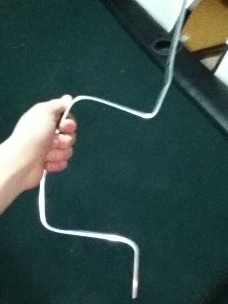 Mis audífonos rompieron dos días antes de esta construcción, por lo que he utilizado como interruptor de encendido/apagado. Tomé una cosa de metal plana... y doblado en la forma de la manija. Tomé un pedazo de guita y un pasador de madera sobre 3inches ling. Perforó un agujero a través de la espiga y tiró de la cuerda a través de y había atado en el nudo. Tiró por el desagüe del fregadero en el contenedor de leche.