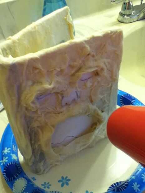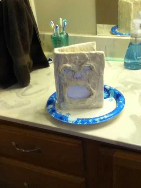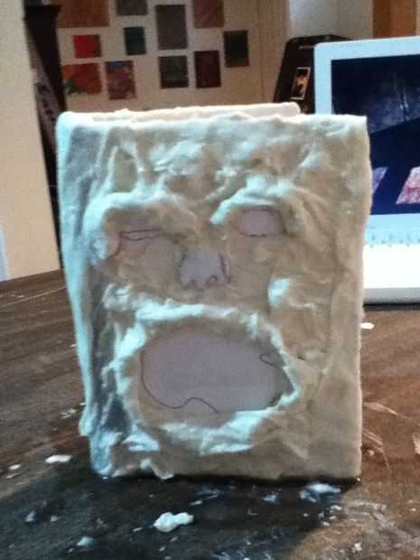 para ver el clásico Necronomicón, tomé papel maché y toallas de papel. Cubrí todo con las toallas de papel en papel maché. Yo les arrugó que parecen las arrugas. Para asegurarse de que seque más rápido, he intentado secarlo el libro. Que llevó a largo, así que acabé poniendo al frente de mi calentador. Seca mucho más rápido.