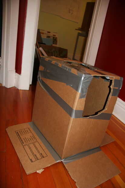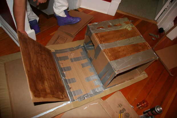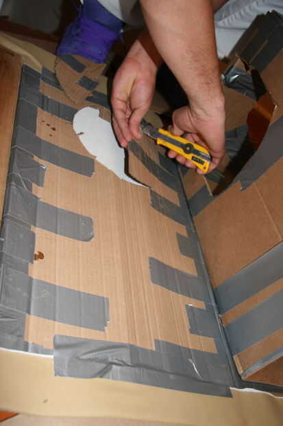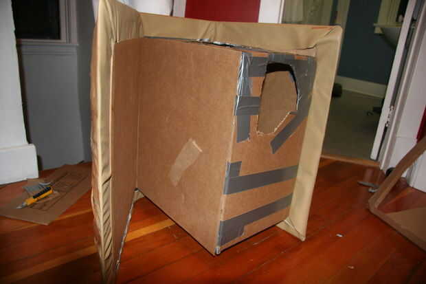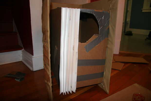 Corte el agujero del brazo en la columna (casi se me olvida hacerlo). Os adjunto la parte posterior de la caja en el interior de la contraportada. Y luego he aplicado mi adhesivo aerosol confianza dentro de la segunda mitad del interior página pedazo de cartón y el frente de la caja. Una vez que fueron, tuve mi libro funciona.