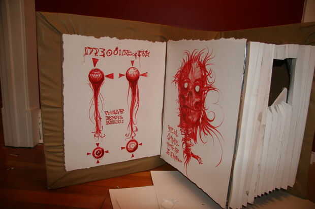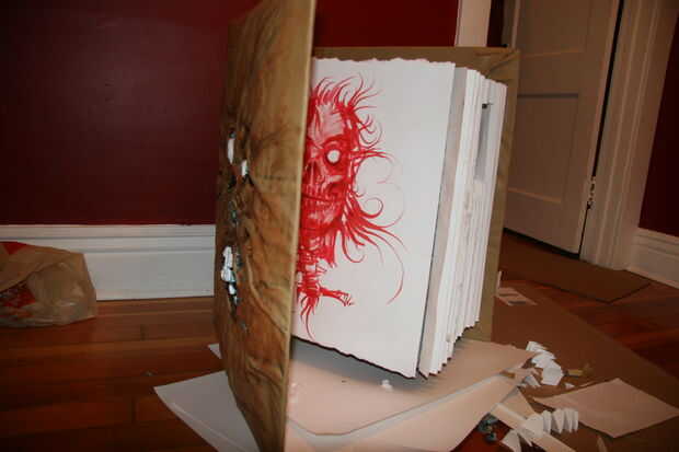 Una vez las ilustraciones completan que rasgar los bordes y aerosol pegado al interior cartón.