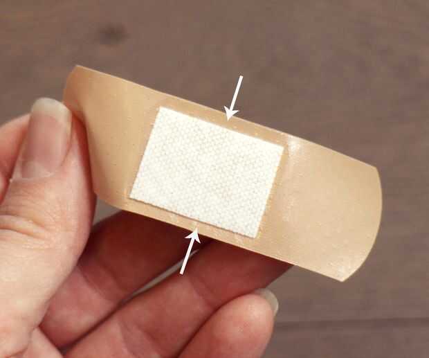 Capa 1: plástico curitas - que se pegan a lo largo de ambos lados de la almohadilla de Gasa (como en la foto)