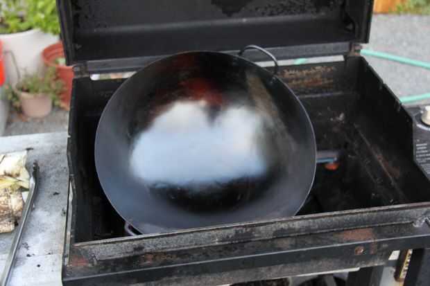 Intento evitar llenar mi casa con aroma a aceite quemado y así he hecho el interruptor para condimento de mi hierro y woks en mi barbacoa fuera en el patio trasero. Es un proceso mucho más agradable, no calientan toda la casa y lo más importante, no hacer mis cortinas olor a McDonald ' s.