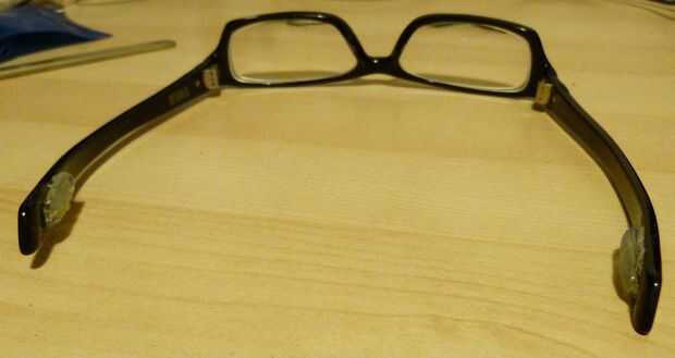 Tengo un par de vasos de enmarcado totalmente plástico. Al mirar hacia abajo (especialmente sobre el lado de un barco de lanzamiento, frente al mar), estas gafas comenzaría a deslizar mi cara. Bajó un par de veces, así que poner un bloque de Sugru en el interior de cada brazo para hacer los brazos agarre mi cabeza mejor.
