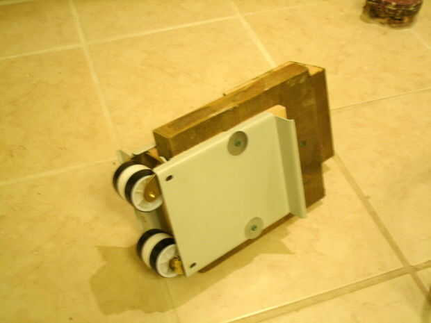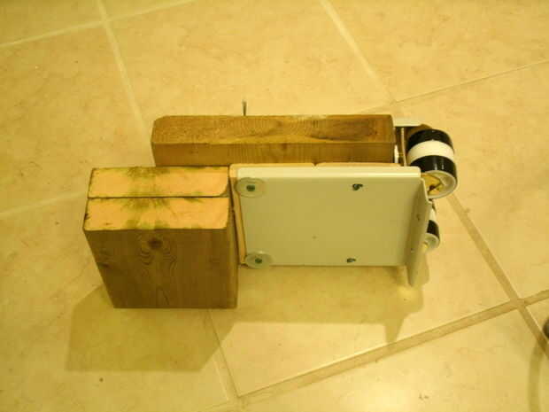 Siguiente tomé dos ruedas de armazón de cama, agregadas algunos eléctrico cinta para hacerlos más grandes en los bordes en lugar de más estrecha en el borde, que apareció por primera vez. He encontrado algunas placas de acero que parecían ser apropiado pero podrían fácilmente han utilizado algún hierro de ángulo. 2 x 10 se agrega para un soporte robusto. Todo el peso de la dobladora se empuje contra él por lo que yo quería estar seguro era sólido. Estas placas aseguraron que no se giran las ruedas. Un bono que se puede lograr añadiendo tornillos a cada lado del marco de cobre amarillo de la rueda. Taladro en la madera donde parece que la muela tiene suficiente espacio para llegar justo en el medio.