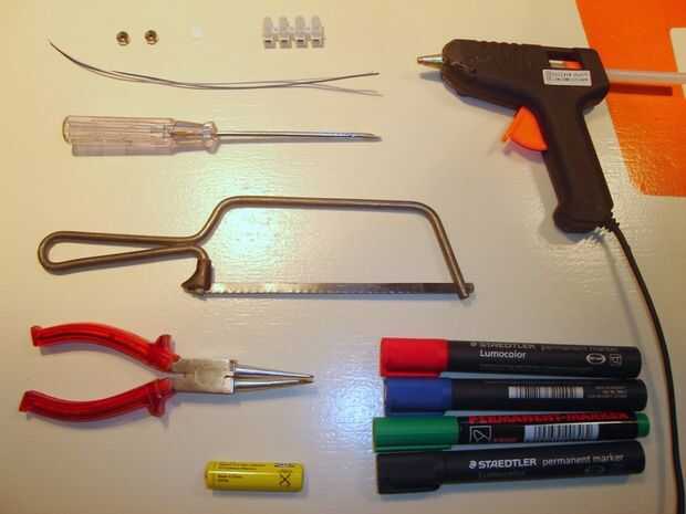 - y finalmente una batería V 1,5 o 1,2 V recargable (para las primeras pruebas, mejor Asegúrese de que no es realmente totalmente muerto)