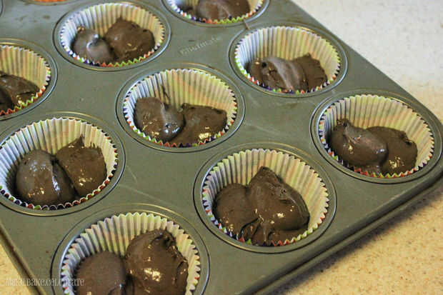 Hornear 18-24 de sus magdalenas de chocolate favorito. Me gusta usar exactamente 3 cucharadas de masa cada uno.