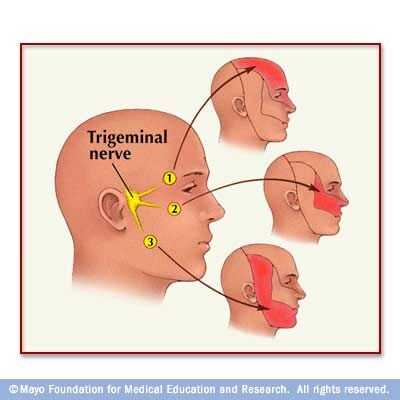 "Áreas facial inervadas por el nervio trigémino". Ilustración. Spinesurgery-wecareindia.com. 03 de abril de 2014. http://www.spinesurgery-wecareindia.com/condition/trigeminal_neuralgia.html.