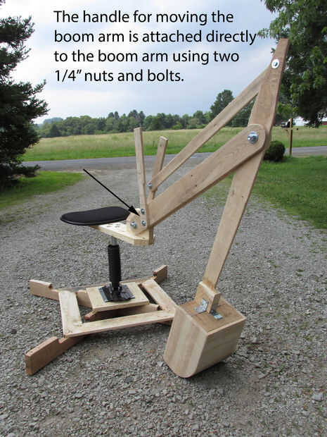 Muy bien, así que este es el último paso donde usted realmente tiene que construir algo. Todo lo que tienes que hacer aquí es el mango restante del perno a la varilla como se muestra en la imagen. Donde fue instalada la otra manija para que pudiera girar, éste debe estar instalado para que se fija firmemente el brazo del auge, que forma usted puede controlar el movimiento del brazo del brazo por tirar hacia atrás o empujando en él. Para perno en su lugar utilicé dos 1/4 pernos.