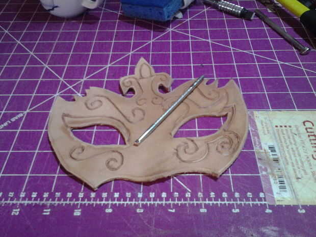 2-ahora agarra el cuchillo del eslabón giratorio y comenzar a cortar todas las líneas que sólo trazó sobre la máscara. Tómate tu tiempo si eres nuevo a trabajar con una cuchilla giratoria. Se necesita mucha práctica para utilizar con soltura un cuchillo giratorio pero la práctica hace la perfección!
