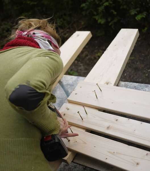 Paso 5: Reunir a los lados: Atornille los listones laterales en las piernas.