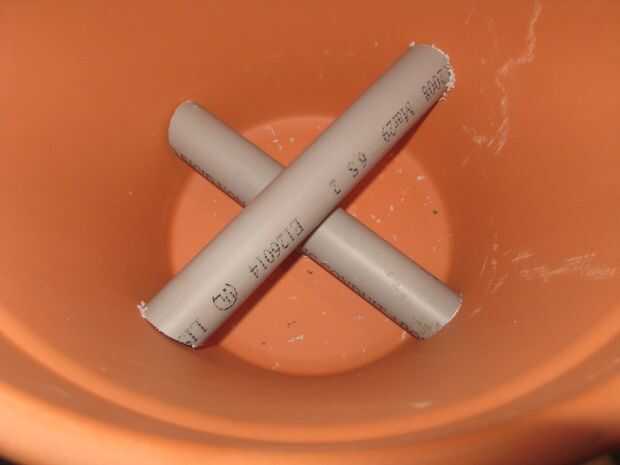 Asegúrese de que su tubo más corto quede en la parte inferior de la maceta de 12"(sin tocar la parte inferior) y asegúrese de que el tubo más largo se coloca sobre (y perpendicular a) el tubo más corto sin tocarlo.