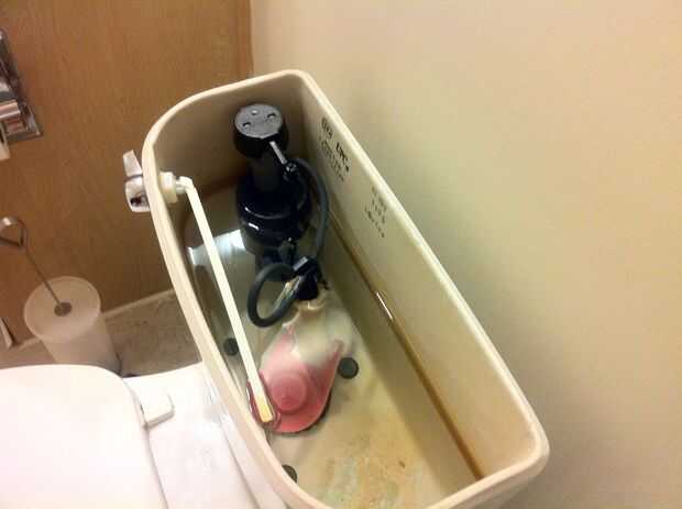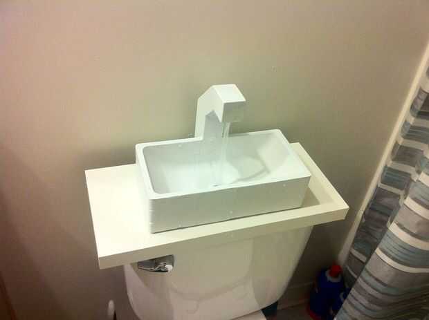 El desagüe del fregadero se empuja en el rebosadero. Cuando descarga el agua jabonosa del lavamanos se vuelca directamente en el borde del inodoro. Usted notará que el agua de su inodoro se convierte con jabón cada vez Lave. Estoy contando esto para ayudar a mantener limpia mi tazones de fuente de tocador!