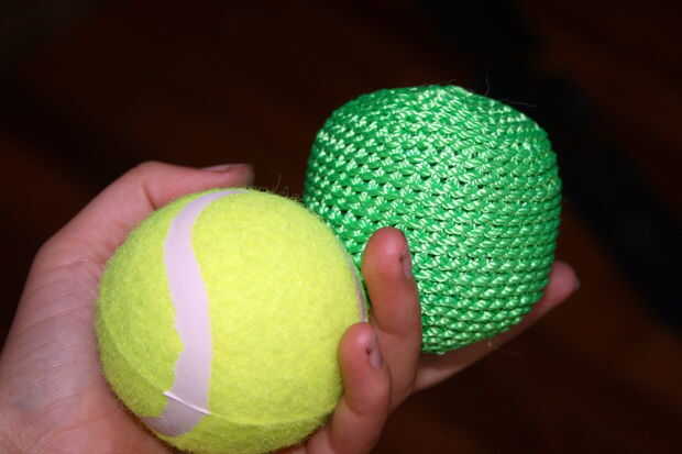 Aunque se puede hacer hacer y hacer malabares con casi cualquier cosa, me gusta hacer malabares con las bolas de ganchillo, agradables. Y cuando usted hace su propio, usted puede hacer exactamente la plenitud, la dimensiones y el peso que estás buscando.