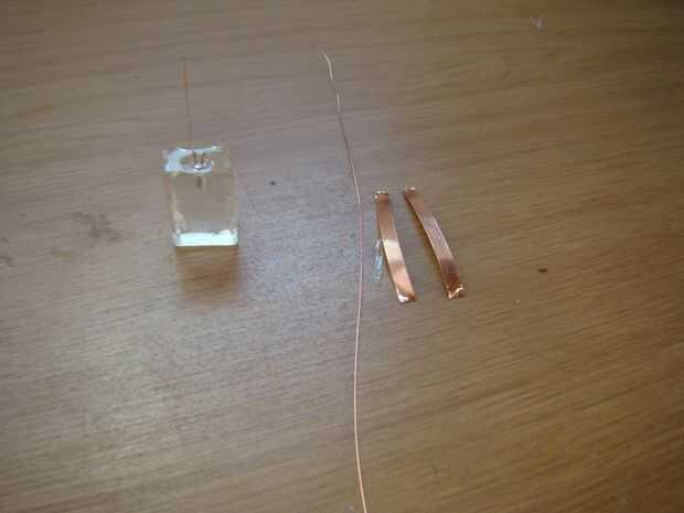así que esta parte es donde dejas a tu artista interior. Personalmente prefiero bobinas así que encontré un tubo delgado y un alambre alrededor de la herida. Hice un lazo y soldadas a una pierna. Mientras tanto la otra pierna fue grabada al lado con la cinta conductora.