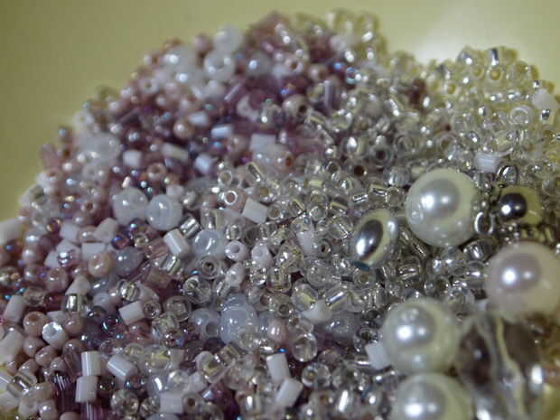 Los materiales que tiene y utiliza varían y difieren de la mía. Usando granos que parecen perlas pueden ser realmente hermoso así. Ser creativo, pero trate de ser coherente con un tema similar. Es realmente fácil de hacer este look hortera! Hecho agregué más granos y trató de hacer más interesante pero cruzado en el área gris "pegajoso" - donde apenas no parecía bueno ya. Quité algunos granos y se veia mucho mejor! Así que procura que se vea limpio y elegante!