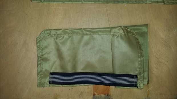 Coloque el lado de goma elástica, pinzas, a lo largo del borde largo de la parte inferior. Barra clave un extremo del elástico de la pinza de 1/2" del borde corto.