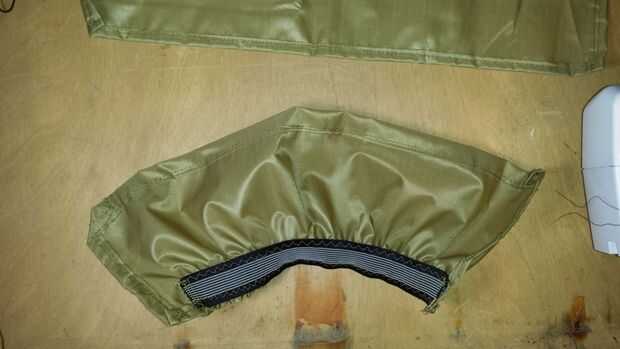Elástico zig zag puntada a lo largo de ambos bordes de muñeca elástico mientras se tira de ambos extremos para extender completamente elástico.