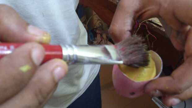 Aquí he utilizado pintura con base de aceite que pegado a la cáscara fácilmente, pero la