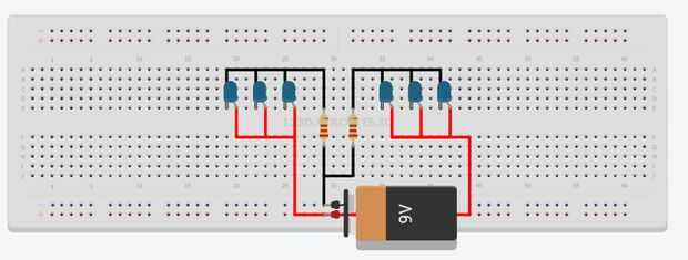 Aquí es el circuito básico que se muestra con un 123d circuitos esquemático. Los cambios solo de batería ya que usamos un adaptador de 12v en su lugar, pero el circuito básico mantiene igual.