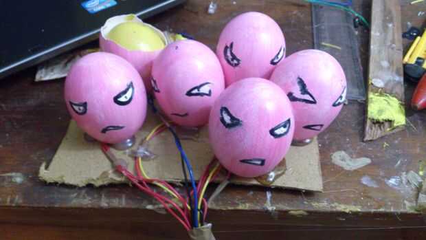 Esto muestra todos los huevos con los cables y conducido en sus lugares correctos.
