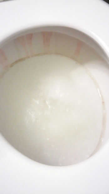 El momento en el inodoro el vinagre bicarbonato de sodio reaccionó causando un montón de llena