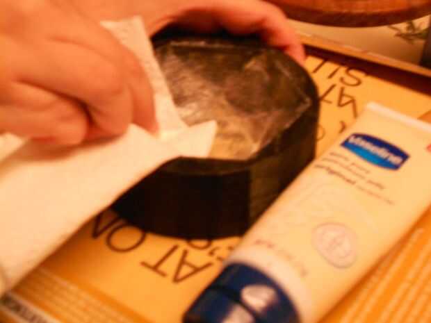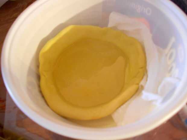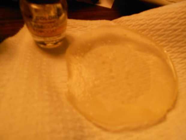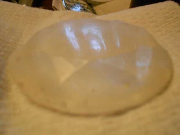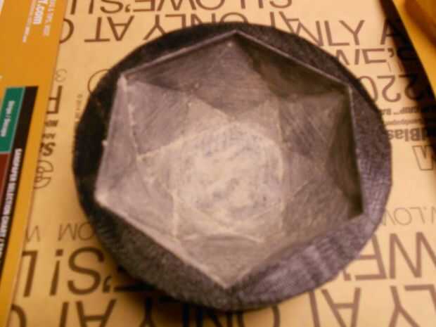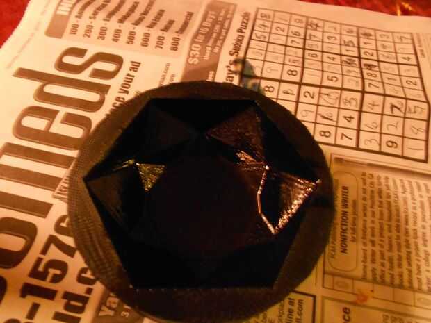 Luego, fue tiempo de preparación de molde. Usé algunos woodfiller y papel de lija para obtener la superficie de mi molde listo. Luego me froté sobre una capa de vaselina para que no se pegue. Luego preparé mi resina según las instrucciones de la resina de epoxy de Alumilite increíble elenco claro. Derramé mi entonces esperada 24 horas para que cure la resina. Aquí está el problema: nunca saldria. Incluso tenía mi papá usar su martillo y un cincel a él - salió el plástico, pero la mayoría de los se aferraba a la piedra. Probé otra vez con un molde que imprime en el laboratorio de redacción de mi papá, una capa de resina en el molde, spray de liberación de molde, luego una segunda colada de resina. Aún así, el molde no daría a su tesoro. Yo no podía incluso retirar con un cincel el molde esta vez! Finalmente, llegué a la tienda de artesanías nuevo de algunas masillas de molde de Alumilite. Usar una gema de cristal peso de papel de mi hermana, yo echo un nuevo molde. ¿Por qué no usar el pisapapeles? Uno no era plana en la parte inferior como necesitaba y 2 era muy pesado. Finalmente, tuve una Arkenstone, un deforme, burbuja llena Arkenstone, pero una piedra sin embargo. En este punto fue el lunes antes de esto así que no tenía más tiempo para refundición o habría intentado arreglarlo.