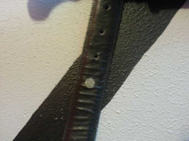 Una idea súper fácil que tuve para almacenar y visualizar mis cuchillos! Toma una correa vieja y uñas el uso de la pared uno de los agujeros de la hebilla del cinturón para un clavo (el mío es en el lado izquierdo) y uno en el lado con la hebilla del cinturón. El clavo en el lado de la hebilla de correa no debe ir completamente contra la pared para que pueda desenganchar ese lado y añadir o quitar los cuchillos de la pantalla. Asegúrese de que la correa es tot contra la pared con el fin de minimizar la flacidez. Y ahí lo tienen como cuchillo super fácil visualización.