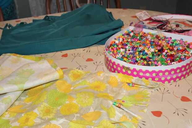 8. cortar ranuras de 1/2 pulgada (flequillo) en la parte inferior de la bandera y agregue los granos. (También, una lección de gran matemática y medición/patrón)