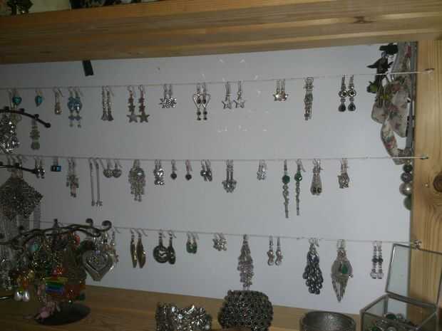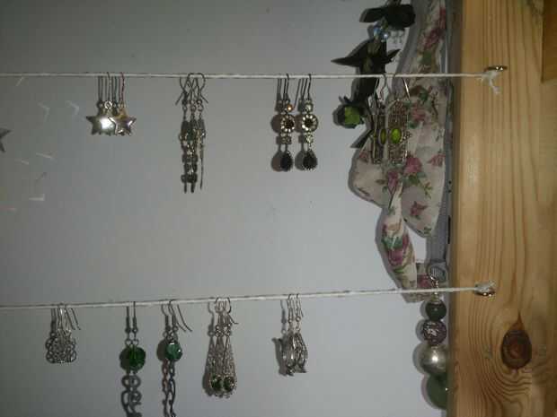 Fue sólo un caso de marca con un lápiz donde querías poner los ojales del tornillo y con la mano o pinzas, enroscar. Continuación del hilo de rosca a través de atar un extremo de la cuerda y cuando tenso atar el otro extremo. ¿Tal vez usted puede encontrar una manera de hacerlo un poco mejor que yo? Ahora colgar los pendientes.