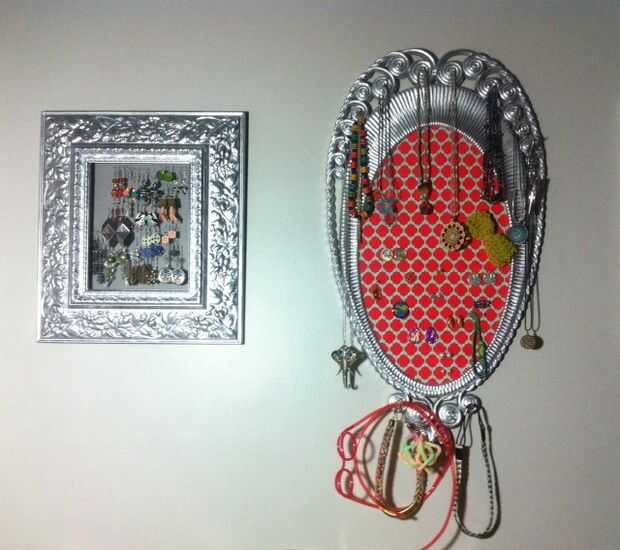 Como una señora de culo crecido siempre estoy buscando formas de simplificar y organizar mi existencia. Más fácil decirlo que hacerlo con cosas más importantes; sin embargo, organizar joyas parecía como debe ser manejable. Investigué varias ideas en línea y terminó mezclando un par ideas diferentes para trabajar con mi colección de joyas personales (sin pulseras ni anillos por cualquier razón) y las materias primas que ya tenía que trabajar con (viejo espejos). Esta es una idea super personalizable!