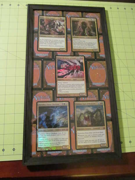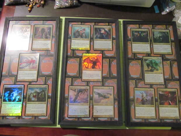 Así que decidí hacer algo con todas las cartas que tenemos sentados. Cuando magos reconocieron Decks de comandante (también conocido como fabricación pre-hecha a conseguir más dinero de nosotros), lanzaron también gran tamaño cartas de comandante para ir con las cubiertas. Yo he tomado los y algunos de los bienes comunes para hacer estas obras de arte para mi esposo.