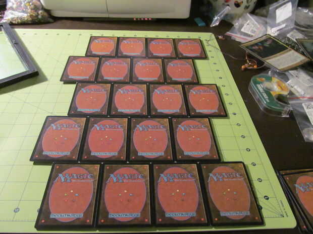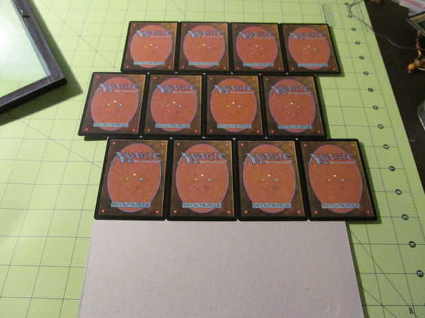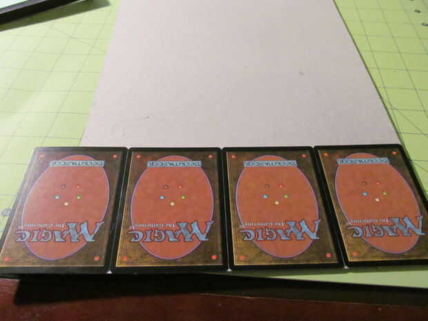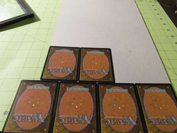 Como observas en las fotos, las tarjetas terminaron siendo más ancha que la Junta, así que he decidido escalonar las tarjetas para dar un efecto de pared de ladrillo. Su marco puede diferir en tamaño, por lo tanto no debes alternar si no quiere. Yo también había considerado a partir de la media y salir a los lados con las tarjetas, pero probablemente hubiera tenido que utilizar tarjetas de más.
