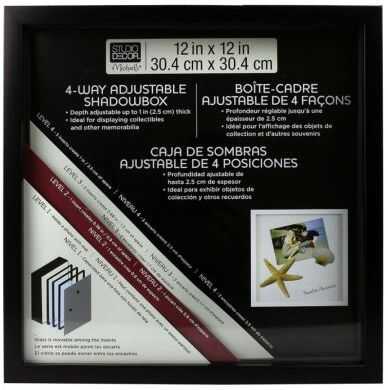 - Shadowbox (negro) - usted puede hacer un shadowbox cortando cartulina (u otro material) y modelar en un marco. Decidí comprar un shadowbox a Michaels para alrededor $12,99 a la venta. Este shadowbox tiene un frente de vidrio (es necesario para el espejo del infinito) y espacio inserta así la profundidad de la caja es ajustable.