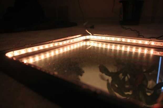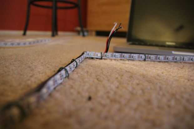 - Inserte la tira de LED en el marco y los cables a una esquina de la ruta. (Alternativamente, puede perforar un agujero en el lado del marco y Encamine los alambres de esa manera.)