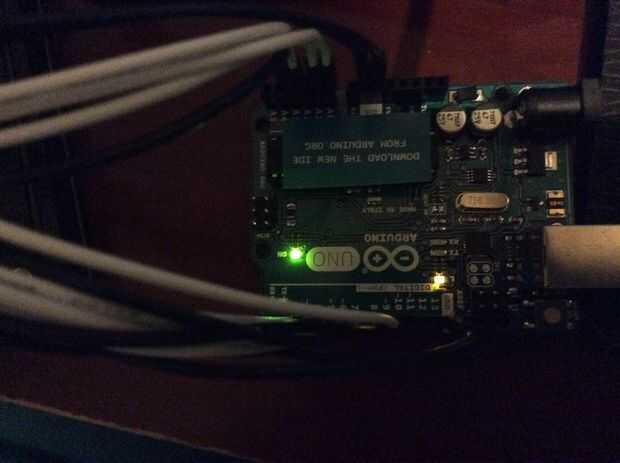 -Uno de los principales pasos que hay que hacer para completar este proyecto es cables el Arduino con el tablero de LED, de manera que el Arduino puede enviar señales a la placa de LED. Siga las imágenes de abajo para completar el cableado. En el Arduino uno, hay una multitud de alfileres, cada uno con una etiqueta en el lado derecho o izquierdo. Asimismo, el conector que se conecta a la board LED tiene pasadores, apenas lo suficientemente grandes como para un cable de puente. Los cables de puente será capaces de hacer una conexión entre los dos puntos y la información de relé sin necesidad de soldadura. La placa también puede ser una herramienta muy útil, evitando la molestia de tener que soldar. En las siguientes imágenes, se retrata mi cableado, con muchos cables de puente blanco y negro.