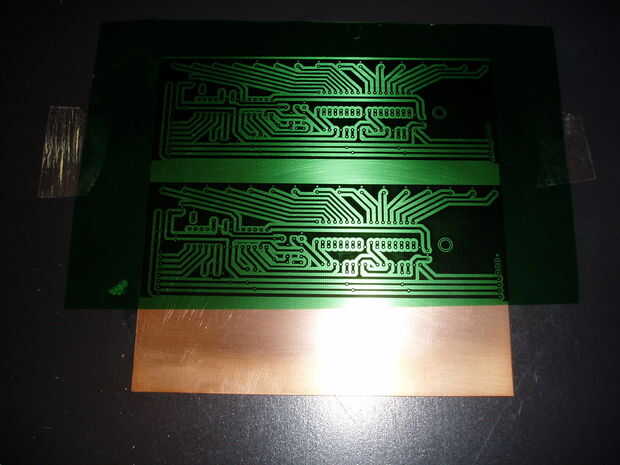 Las juntas fueron diseñadas usando ExpressPCB. Decido comprar algunos solo cobre cara revestida y les grabe yo mismo. Hay un montón de cómo-a de para hacer tablas pero, encontró el método de transferencia de toner funcionó bien para mí. Después de experimentar un poco con la plancha de ropa, retroproyector hojas impresas en una vieja máquina de fax trabajaban mejor. Una permanente marcador o dedo esmalte de uñas negro son buenos para retoques de lagunas donde el tóner no se adhiere bien al cobre. Además, los tableros de cortar fácilmente con una tabla vieron ya que no tengo acceso a una corte. Ácido muriático y agua oxigenada era la mezcla de la opción para grabar las juntas. Si no quieren tratar con el ácido, siempre podría pedir los tableros a través el programa ExpressPCB.