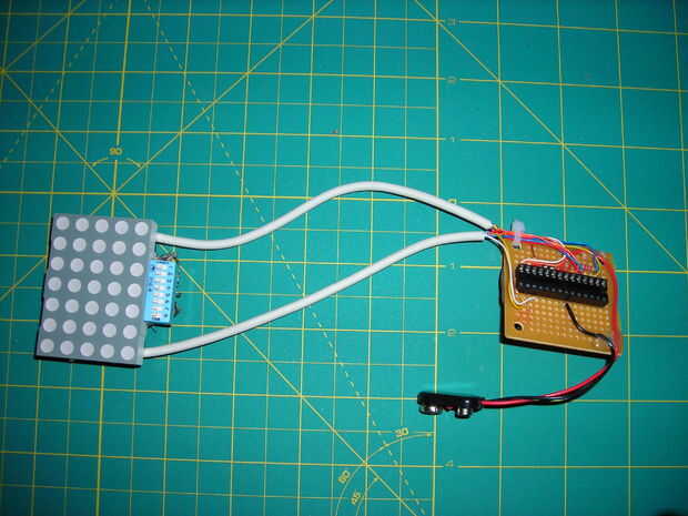 Ahora necesitará conectar los cables saliendo de la exhibición de LED a la placa. Para ayudar con ello ver el esquema adjunto, o puede buscar el código en la intro para encontrar las clavijas de salida en el arduino.