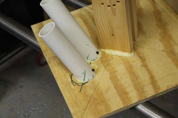 Sólo cortar por la mitad con el ángulo apropiado y atornillados y pegados al soporte.