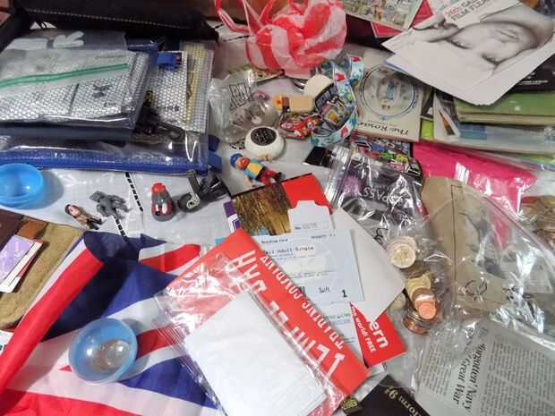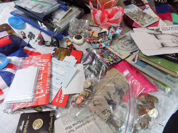 Recoger todas las baratijas del viaje y extienda para que les veáis. Usted no necesita tomar ninguna decisión todavía, pero usted querrá comenzar a separar los objetos de papel.