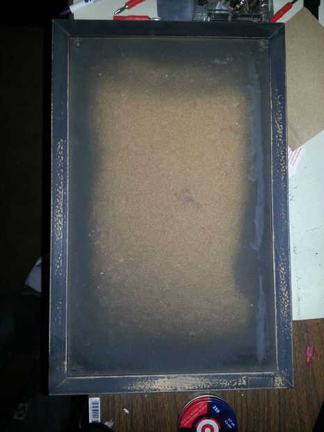 Usé un tablero estándar de quark con un marco en el para mi proyecto. Vas a querer a la arena el marco hacia abajo para que la pintura se pegue a él. Asegúrese de obtener el borde interior. Luego vas a querer pintar el marco que fui con negro.