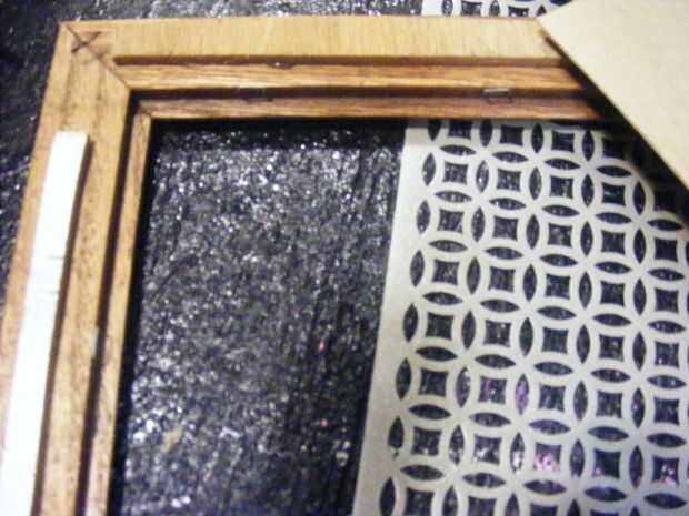 Esta exhibición del collar funciona bastante bien y era fácil de hacer. Tuve una colocación de Junta quark alrededor que estaba utilizando y decidió utilizar eso para la Junta. He lijado y había pintado el marco negro. Cortar la tela para la parte qu