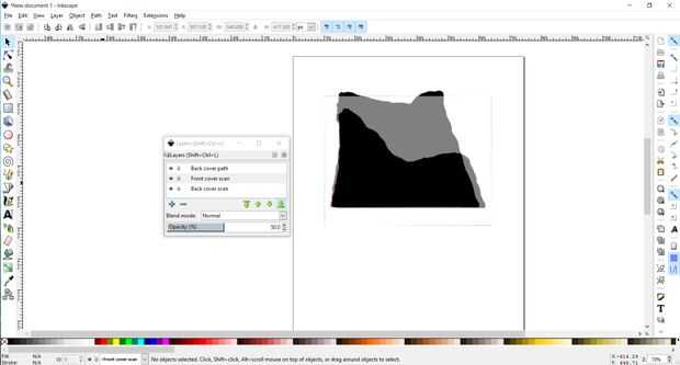 Me importar y posicionar el análisis de punto medio para que coincida más estrechamente con el punto inferior izquierdo de la ruta de la tapa frontal. Utilizar el control opacidad en la caja de herramientas de capa para ver que tengo menor esquinas mejor alineadas a la izquierda. (Dependerá de que esquina que desee alinear en el propósito de su interpolación. En este caso, yo sabía que ataría el libro a lo largo de su borde izquierdo.)