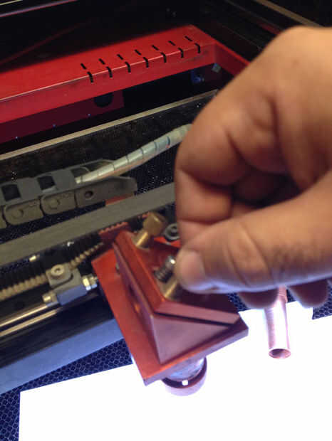 El tercer espejo el rayo láser dobla hacia abajo así que pase a través de la lente y golpear el material a cortar. Si no golpea la lente lo suficientemente cerca para el centro de que la viga se desvía hacia un lado y los cortes no serán enfocados o precisa.